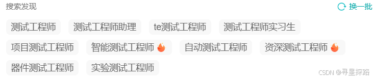 BOSS直聘⽹站提供的测试岗位名称: