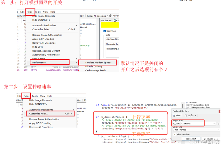 弱 ⽹需要借助⼯具来构造弱⽹,这⾥推荐使⽤fiddler(为啥推荐?答:因为俺用得惯) 1)fiddler配置代理 2)fiddler进行抓包(桌面/移动端) 3)fiddler如何构造弱网条件