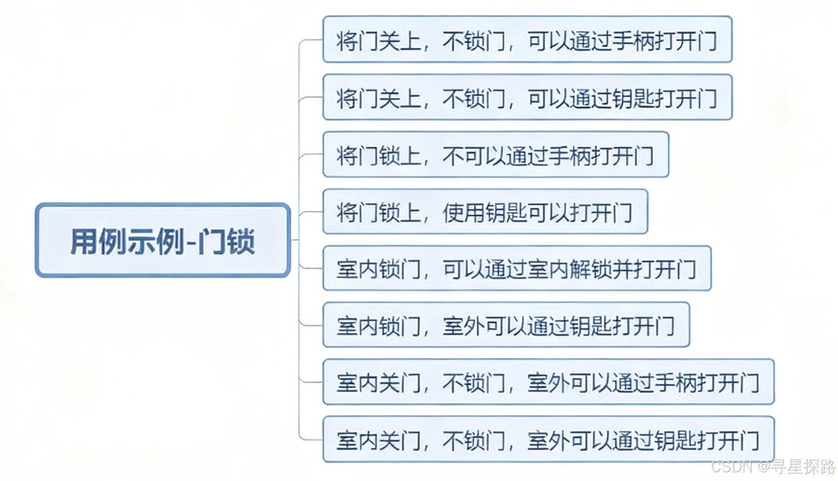现在有一款产品,要求我们对“门锁”设计测试用例,假如你是测试人员,你会怎么设计呢?