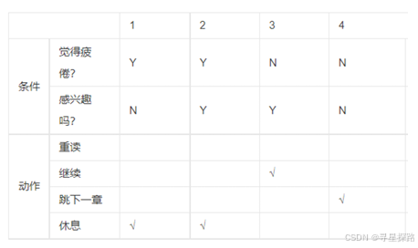 确认了步骤后,我们使用判定表法进一步对上述需求进行测试用例的设计:
