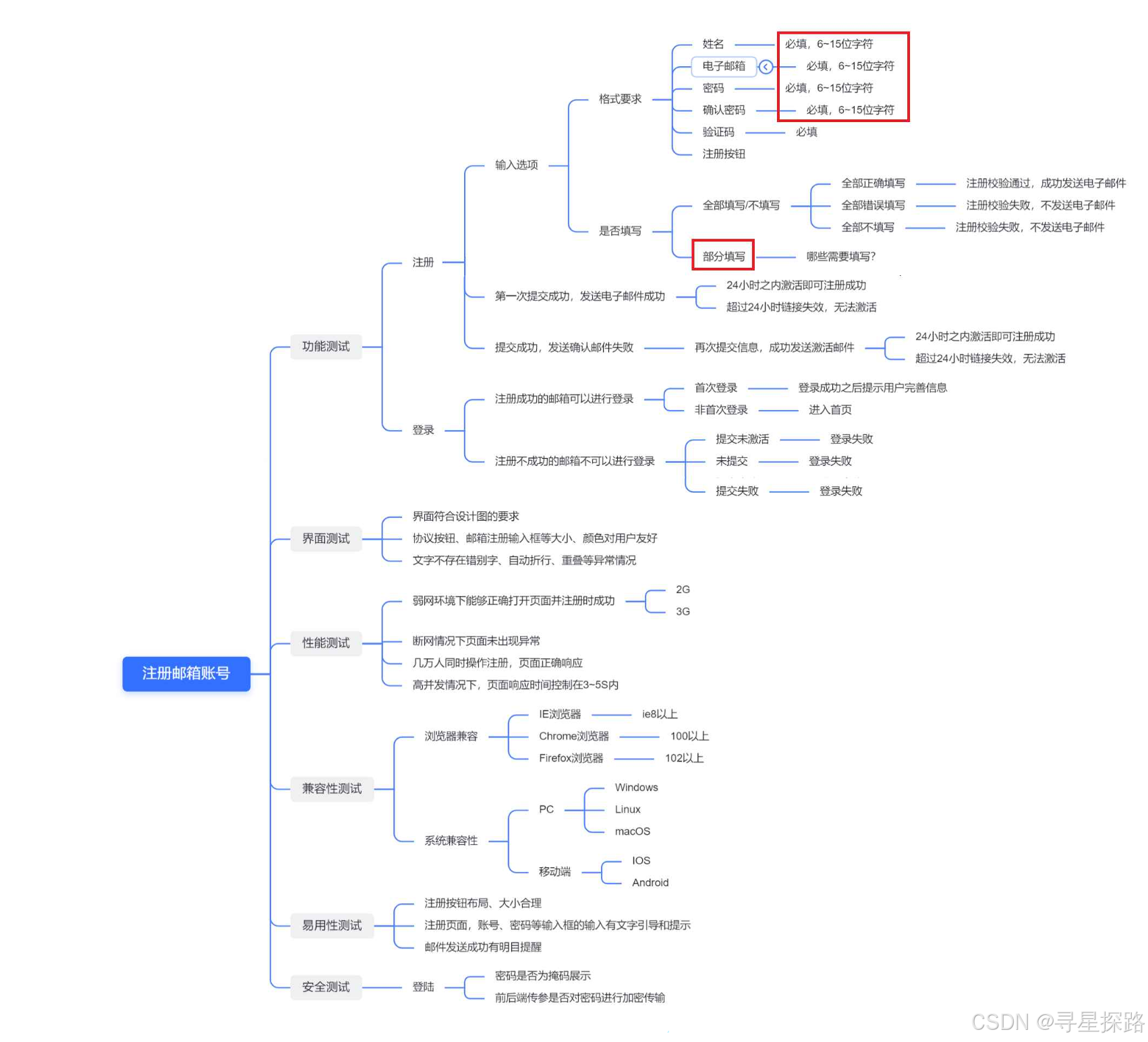 以该注册邮箱账号需求为例,我们来设计测试用例。