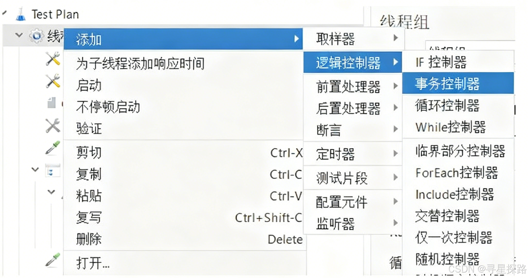 在进行页面性能测试或API性能测试时,事务控制器是一个非常重要的工具。它可以帮助测试⼈员更准确地评估系统性能,尤其是在涉及多个接口或操作的复杂场景中。例如,在订单提交的过程中,可能需要调用多个接口,并且某些接口可能依赖于前一个接口的结果。在这种情况下,使用事务控制器可以将这些接口统一视为一个事务进行性能测试,从而得到更接近真实场景的性能测试结果。