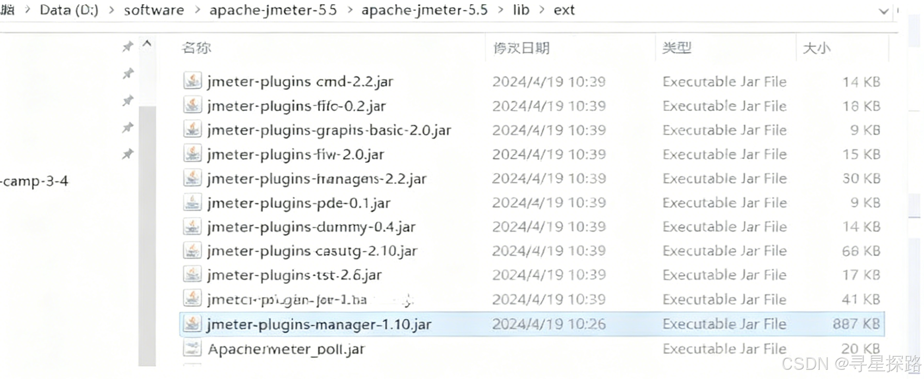 将下载好的插件放到jmeter下lib/ext⽂件夹下: