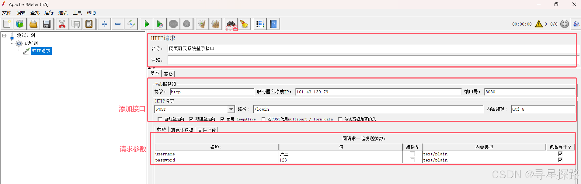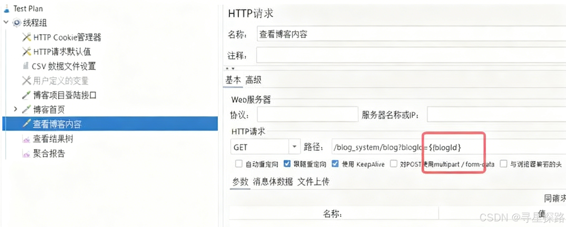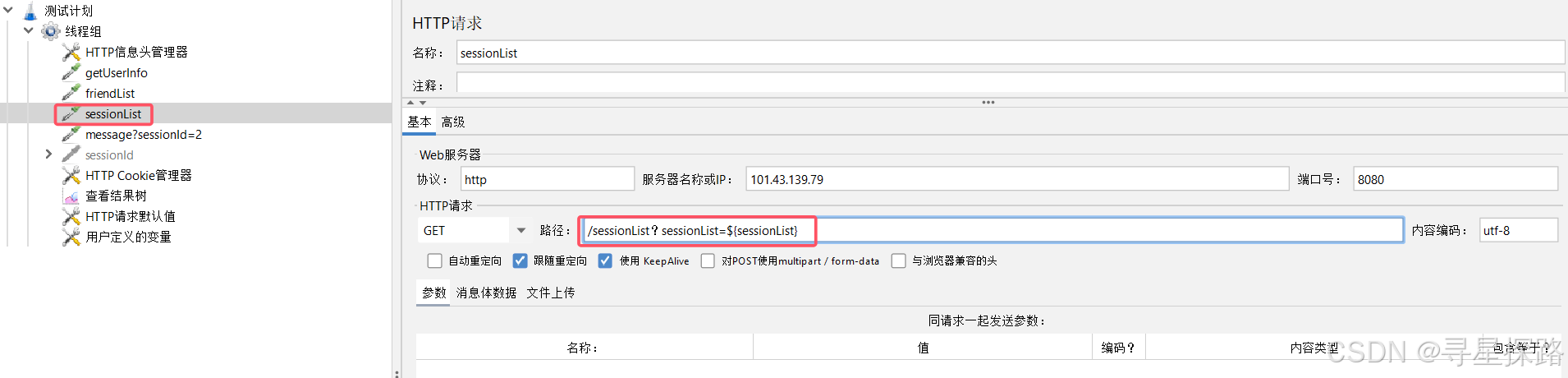 使用:在HTTP请求的取样器中引入定义的变量。${参数名}