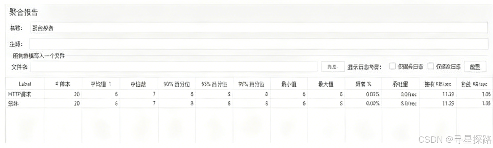 从聚合报告可以看到性能测试过程中整体的数据变化
