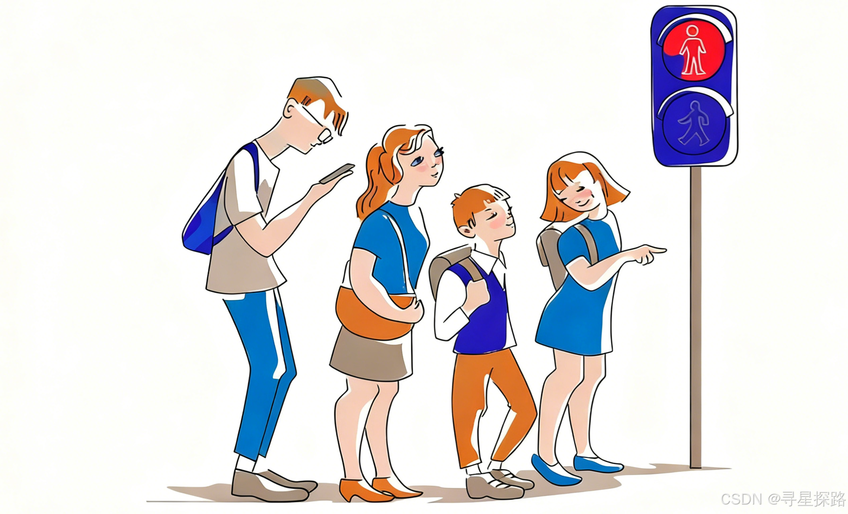 现实生活中,红绿灯就相当于一个集合点,有人先到达,有人后达到,但必须等到绿灯后所有人才能开始过人行道。