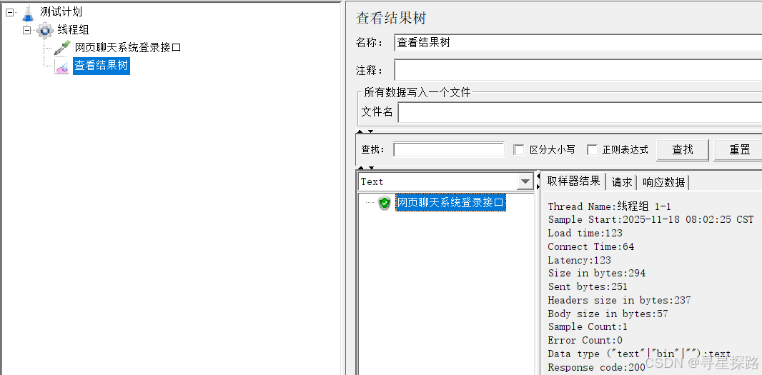 Thread Name :线程组名称 Sample time: 发送请求时间 load time :响应时间 Response code :接口响应状态码