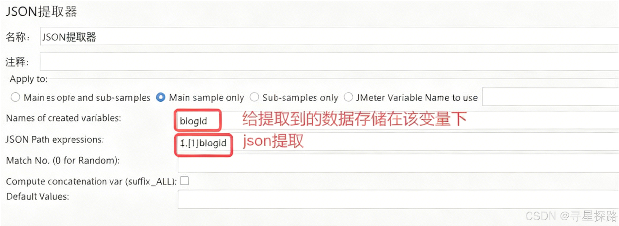 获取相应中的所有blogId元素:$..blogId 获取第一个blogId元素:$.[0]blogId