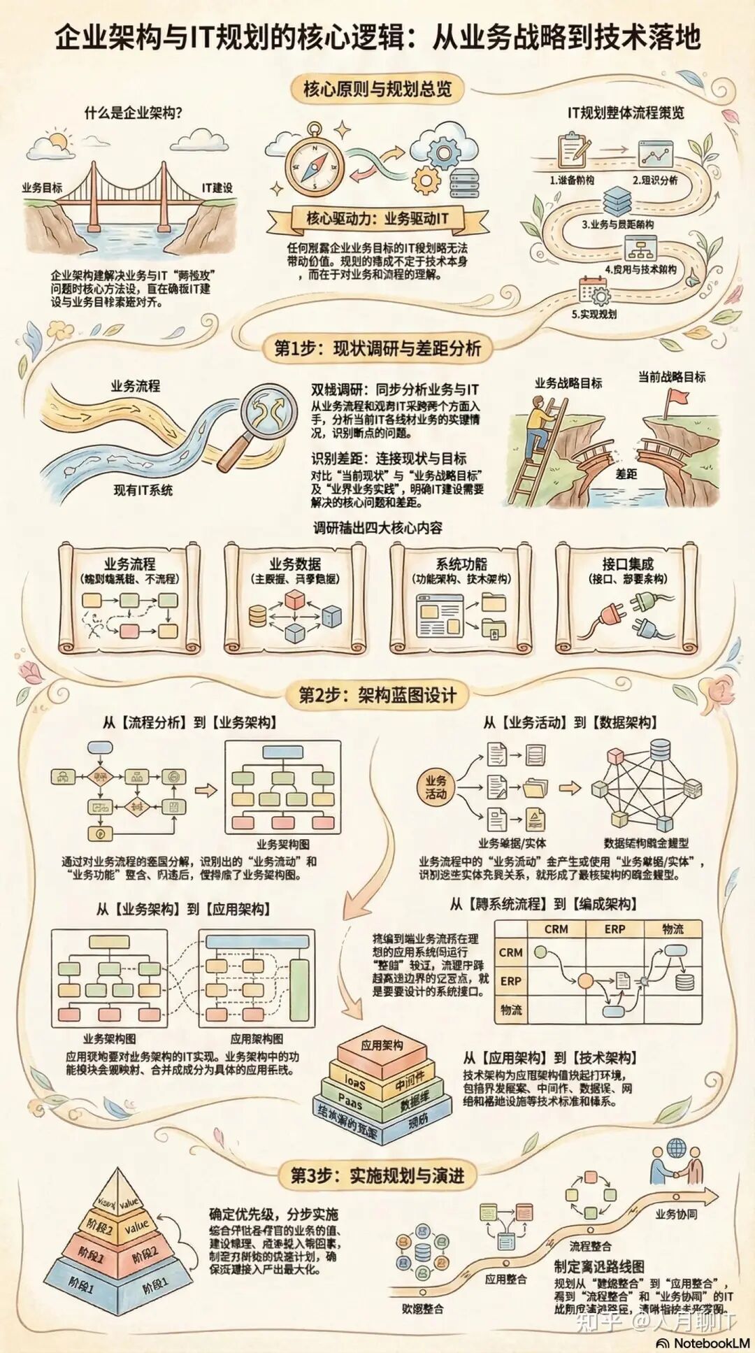 在IT规划咨询领域,很多人熟悉TOGAF等理论框架,却无法真正落地。核心问题在于缺乏自我论证能力——即使能输出业务架构图、应用架构图等成果,却无法清晰解释这些结果是如何一步步分析得来的。