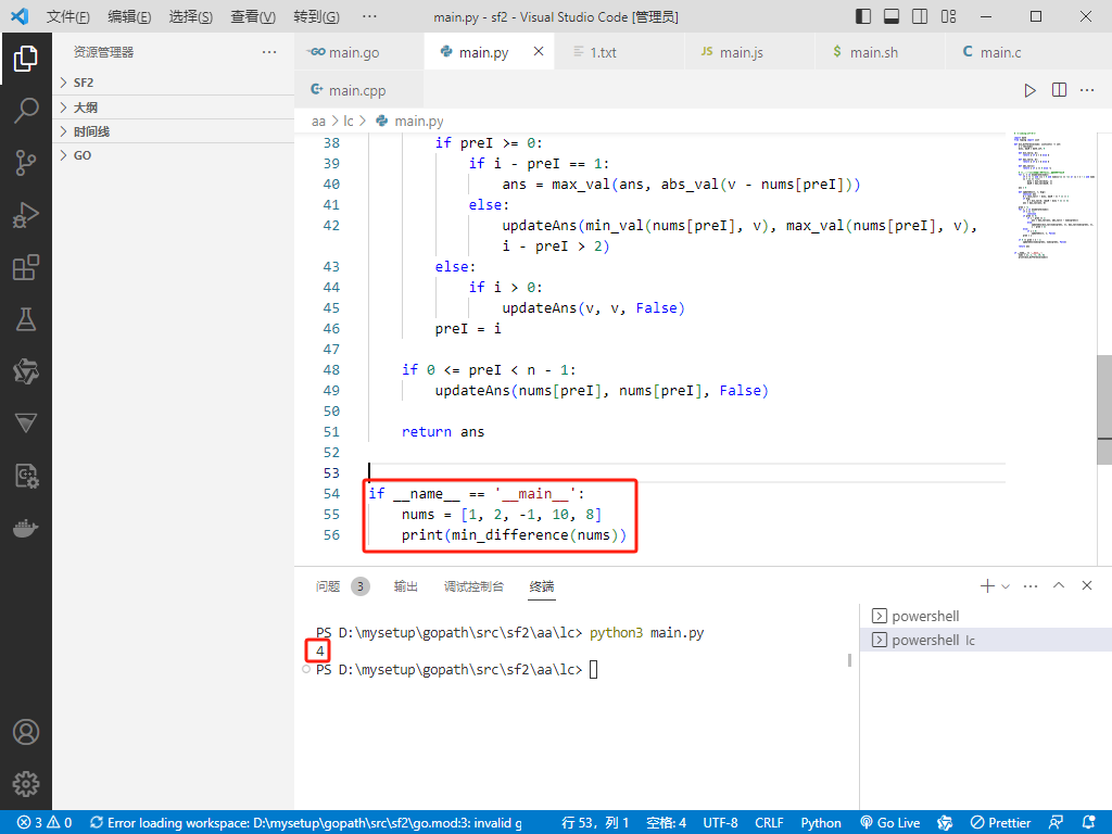 2025-06-09:最小化相邻元素的最大差值。用go语言,给定一个整数数组 nums,其中部分元素被标记为 -1,表示这些元素缺失。