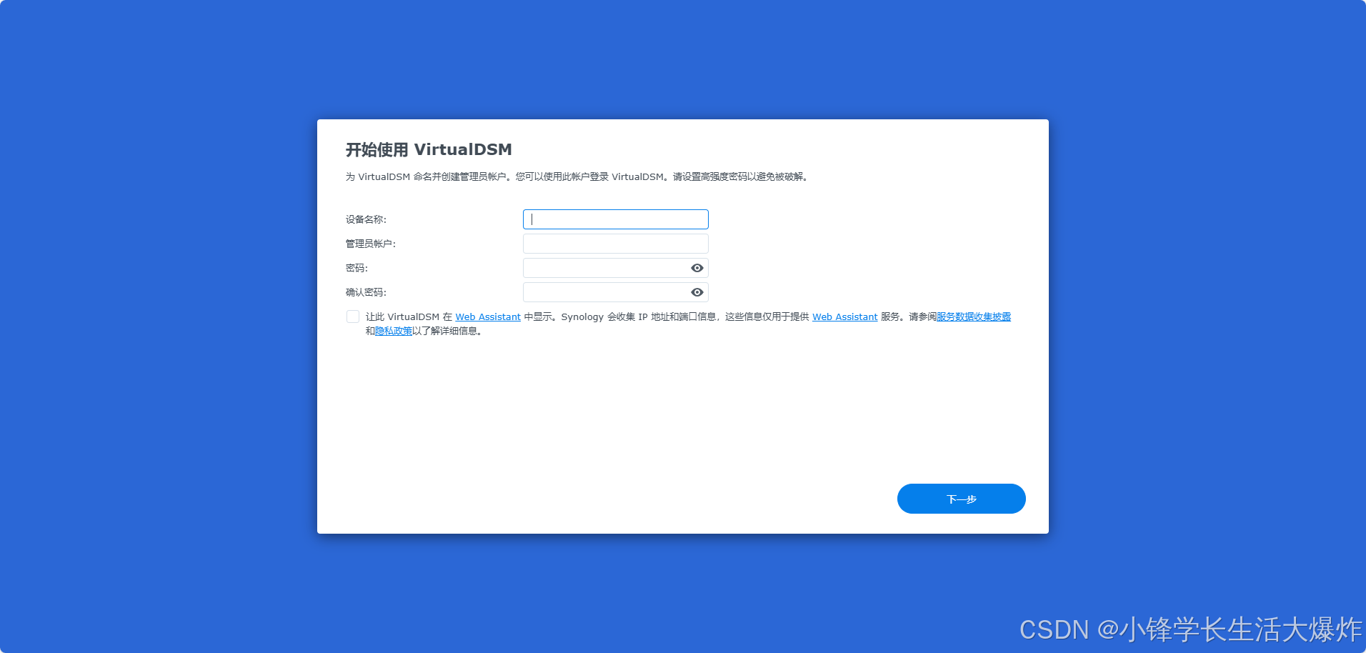 5. 浏览器访问 ip:8000 进入群晖nas。首次进入会自动进行安装,需要挺久时间,甚至一直在“系统正在准备”,不影响,多等等。