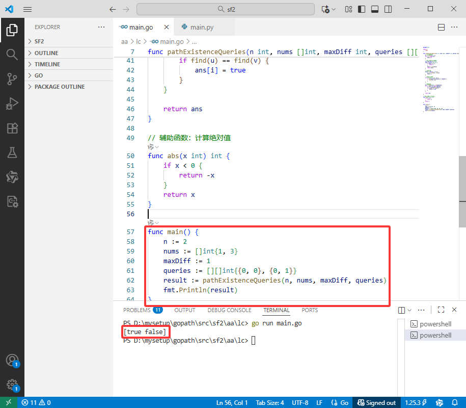 2025-10-18:针对图的路径存在性查询Ⅰ。用go语言,给定 n 个节点,编号 0 到 n-1;同时有一个长度为 n 的非降序数组 nums 和一个整数 maxDiff。