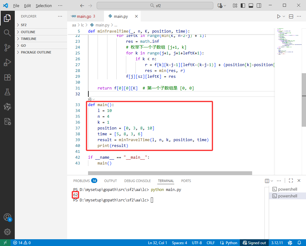 return f[0][0][K] // 第一个子数组是 [0, 0]