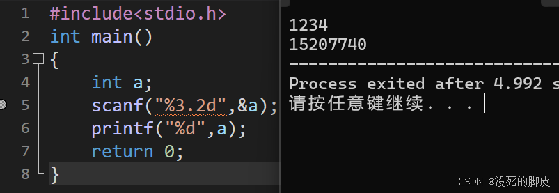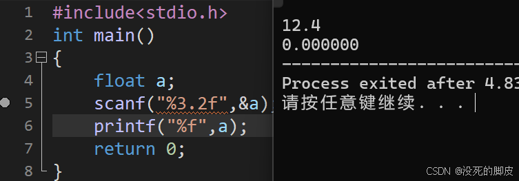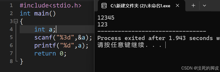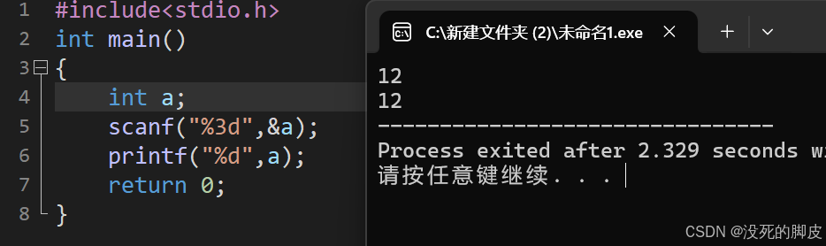 在scanf中m才是代表着至多的意思,如上图m=3,则代表编译器最多读取a的值前3位.