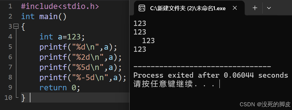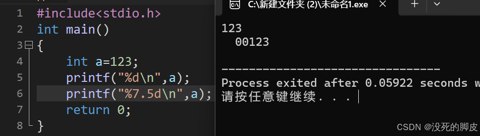 2,当m>真实值,则运行出来的数向右对齐,例如如图,123左边两个空格