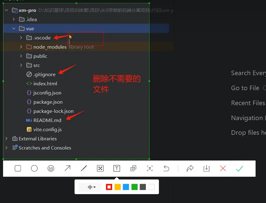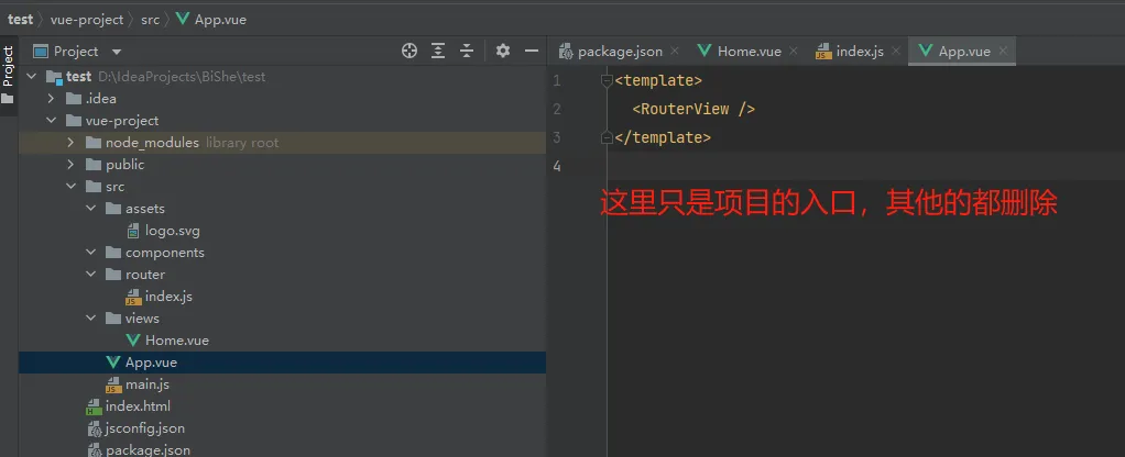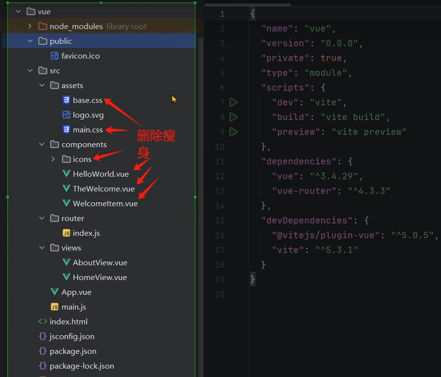 此时我们可以发现整个vue项目过于冗余,有很多无用文件
