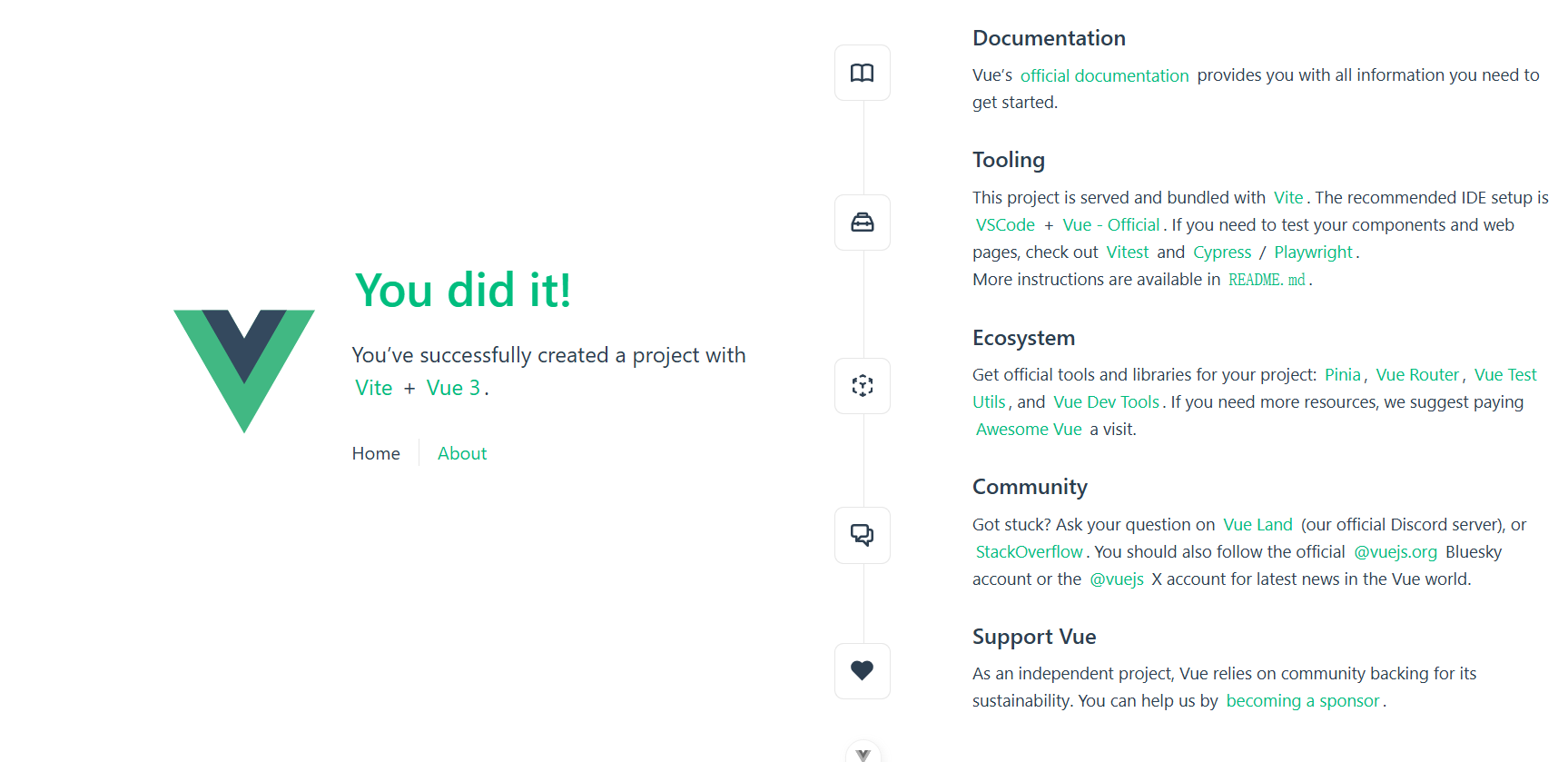 访问localhost:5173,看到这个页面说明vue3启动成功