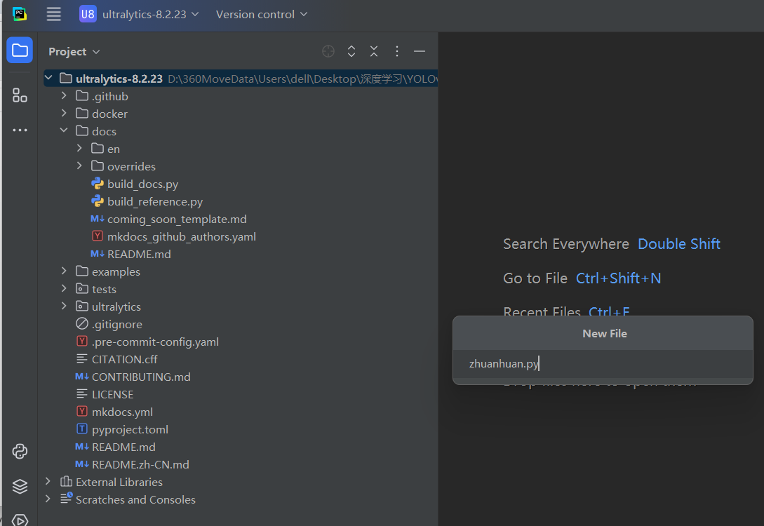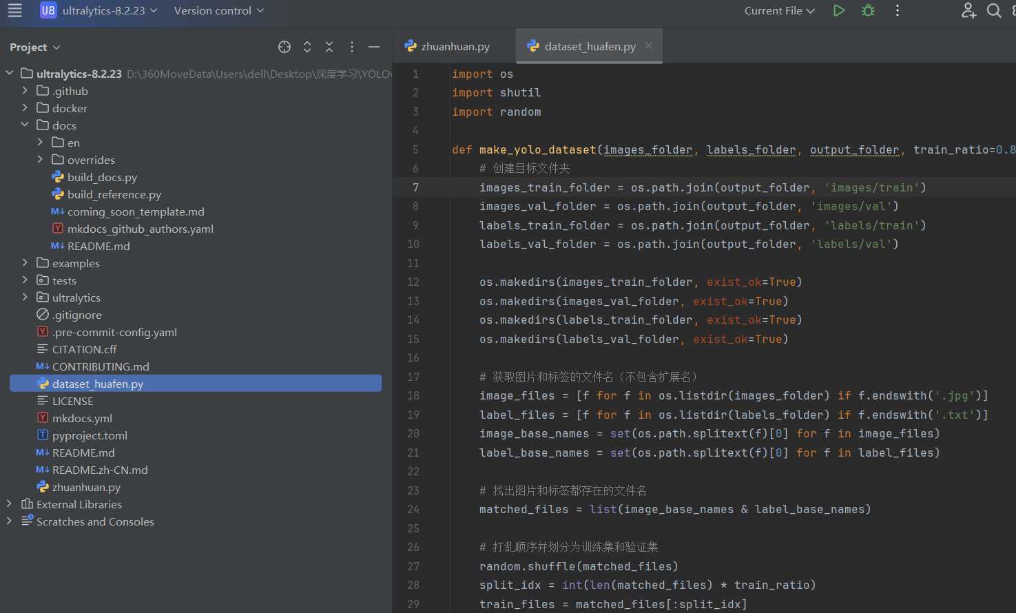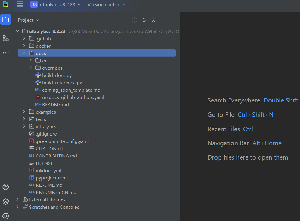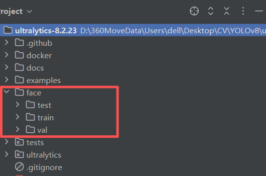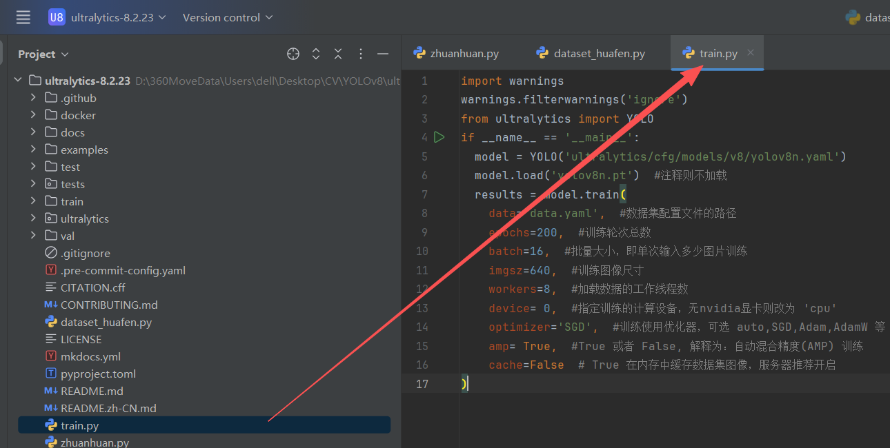 print("转换完成!")然后把yolov8压缩包解压,得到一个yolov8的项目,用PyCharm打开