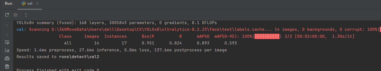 model.val(data='hat.yaml', #修改为自己的数据集yaml文件