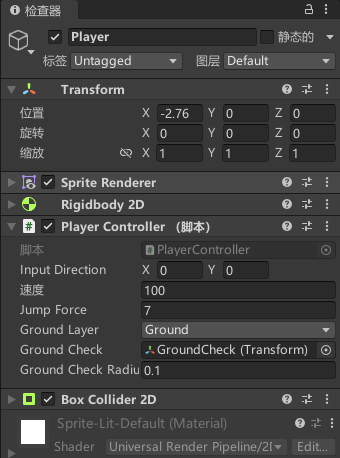 isGrounded = Physics2D.OverlapCircle(groundCheck.position, groundCheckRadius, groundLayer);