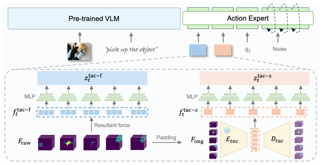 虽然触觉反馈对抓取稳定性至关重要,但在端到端臂手控制中仍面临噪声干扰和时序错位等挑战,因此需要探索更智能的融合机制,例如根据任务阶段动态调整触觉、视觉和本体感受的权重。