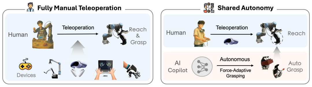 2. 人机臂手协同共享框架,高效采集高质量操作数据