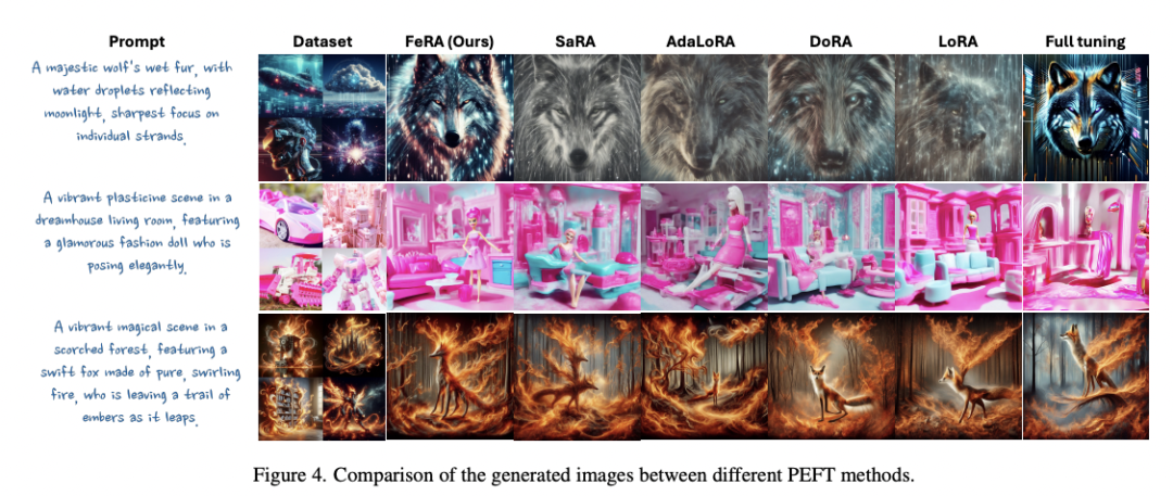 这是 FeRA 的「稳定器」,为了防止微调过程偏离原本的生成轨迹,团队引入了 FECL (Frequency-Energy Consistency Loss)。该损失函数强制要求:LoRA 产生的参数更新量(Update),其在频域上的能量分布必须与模型原本的残差误差(Residual Error)保持一致。这确保了微调过程「指哪打哪」,极大地提升了训练稳定性。