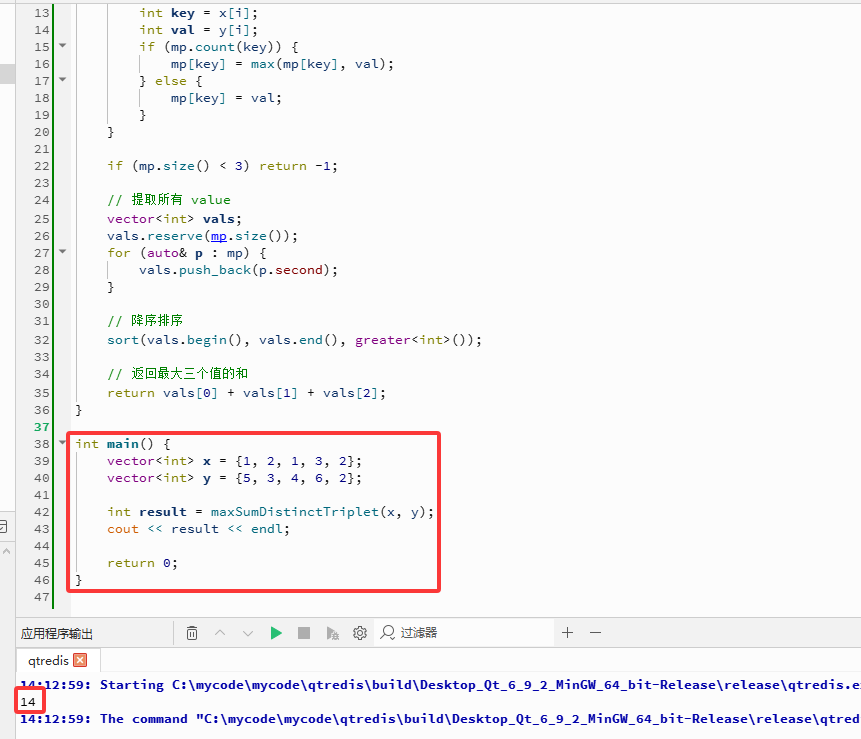 输出:14。