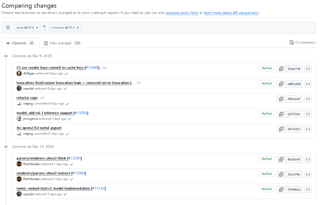 2025年12月12日,ollama v0.13.3 版本正式发布。本次更新引入了多款全新模型,并对现有功能进行了优化与修复,为开发者在代码分析、多语言检索以及软件工程领域提供了更高效的支持。