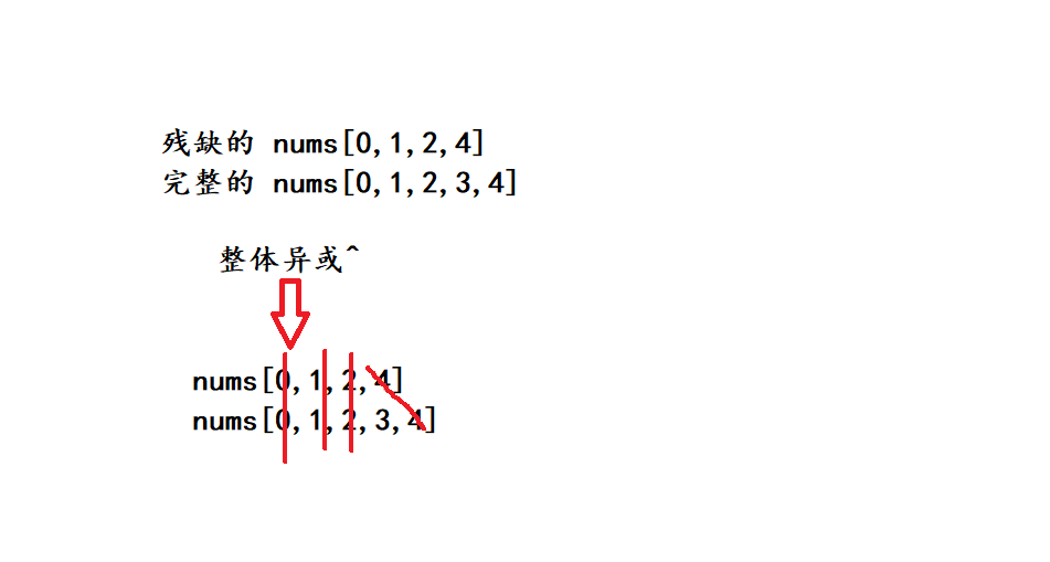1.方法一: 因为每次都缺失一个数字, 每个数字都不同, 可以使用位运算来异或缺少数字的数组和完成的数组, 相同抵消为0, 这样就完成了消消乐操作, 相当于找单身数字, 最后就能找到确实的那个数字 2.方法二: 高斯求和: 根据高斯求和公式, (首项+尾项)*项数/2, 再减去nums数组的和