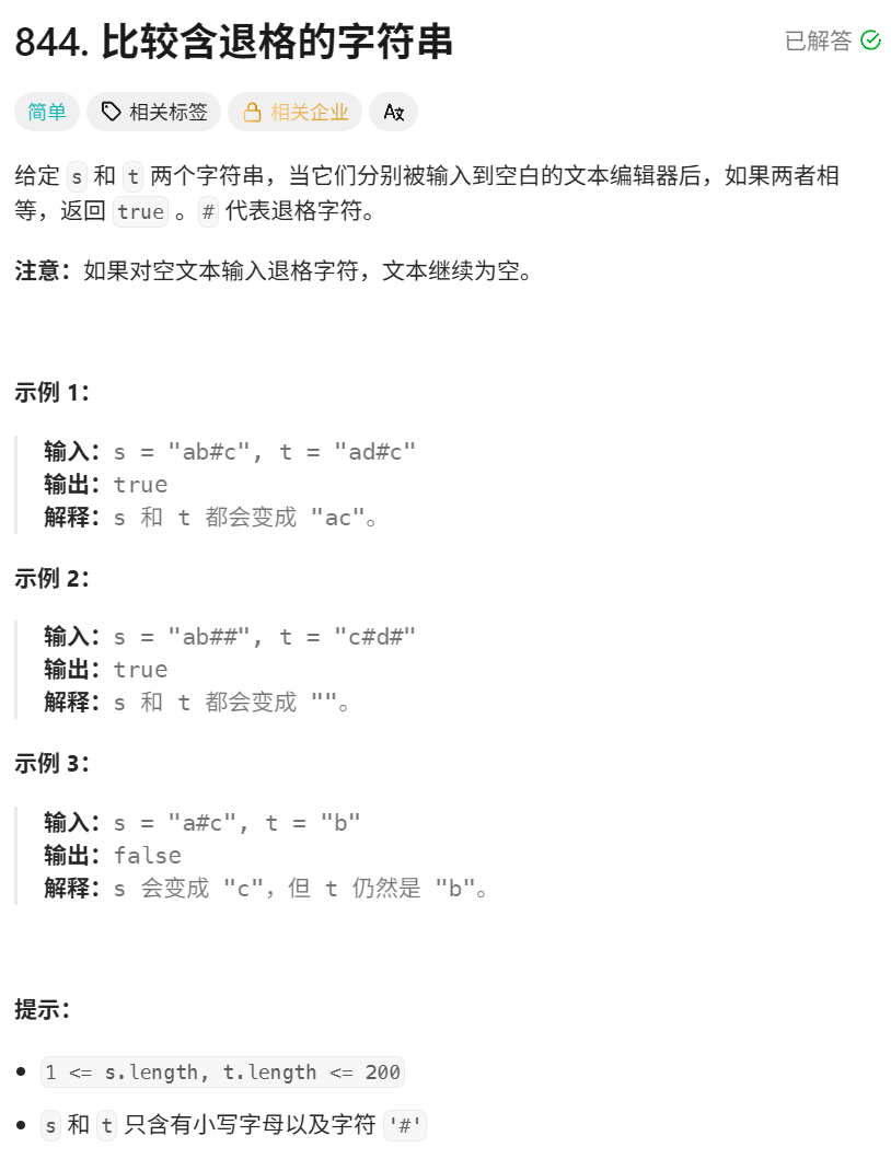 与上面那道题原理一致,这里不过多赘述,需要注意,如果对空文本输入退格字符,文本继续为空,意味着可能#比有效字符多