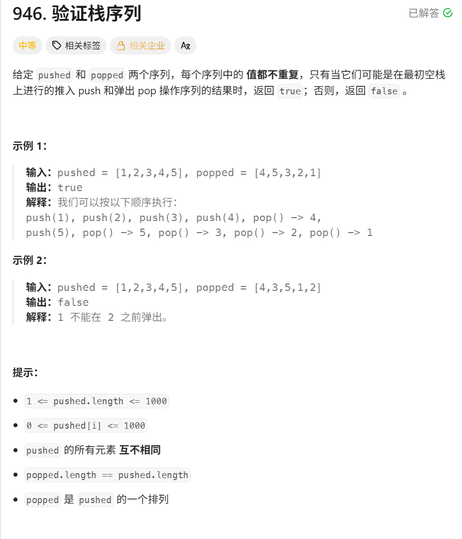 }这道题是学习栈这个数据结构的经典题, 判断栈的出栈序列是否正确, 既然是判断栈的出栈,那么与栈这个数据结构也是脱离不了干系的