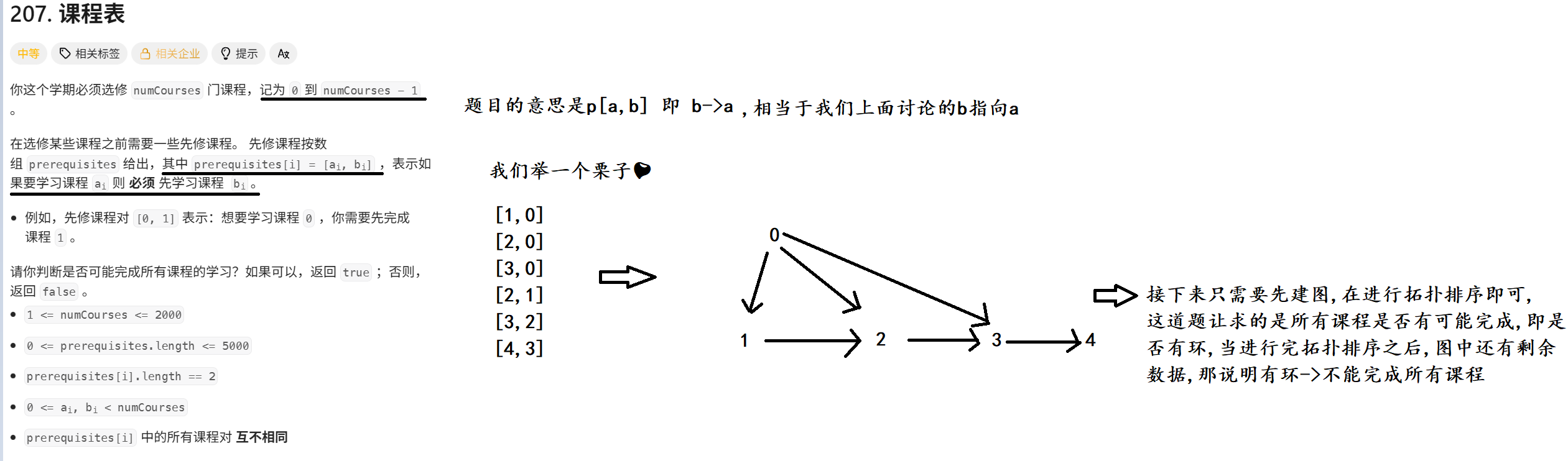 因为这道题和课程表I原理基本一模一样, 唯一的不同已经在题目解析解释过了, 这里我就直接把上道题的算法原理copy过来, 方便大家观看