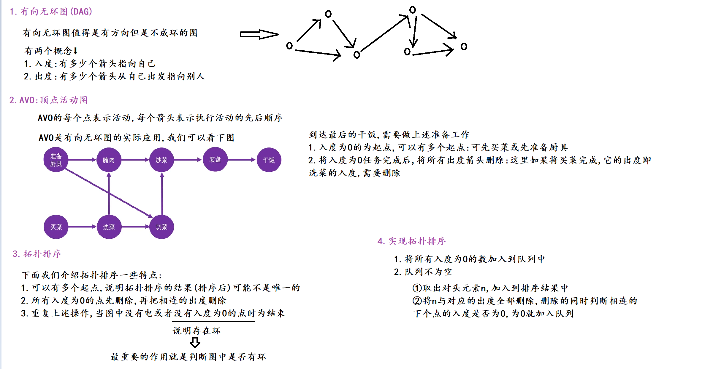 这里我们会介绍什么事有向无环图, 有向无环图应用, 什么是拓扑排序, 以及拓扑排序如何实现, 算是拓扑排序的整体解析, 后面的题都离不开这个推导过程