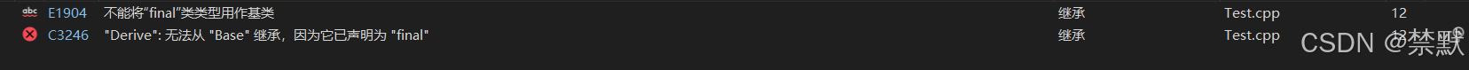 方法2:C++11新增了一个final关键字,final修改基类,派生类就不能继承了。