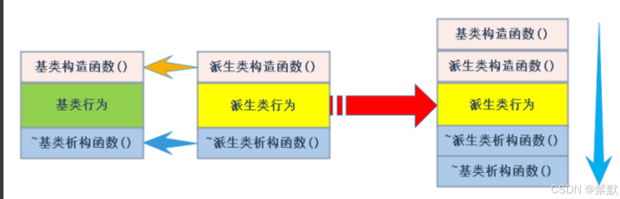 4. 派生类的析构函数会在被调用完成后自动调基类的析构函数清理基类成员。 因为这样才能保证派