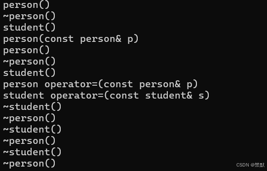 6个默认成员函数,默认的意思就是指我们不写,编译器会变我们自动生成⼀个,那么在派生类中,这几个成员函数是如何生成的?