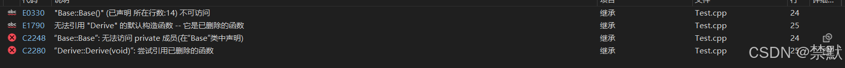 方法1:基类的构造函数私有,派生类的构成必须调用基类的构造函数,但是基类的构成函数私有化以后,派生类看不见就不能调用了,那么派生类就无法实例化出对象。