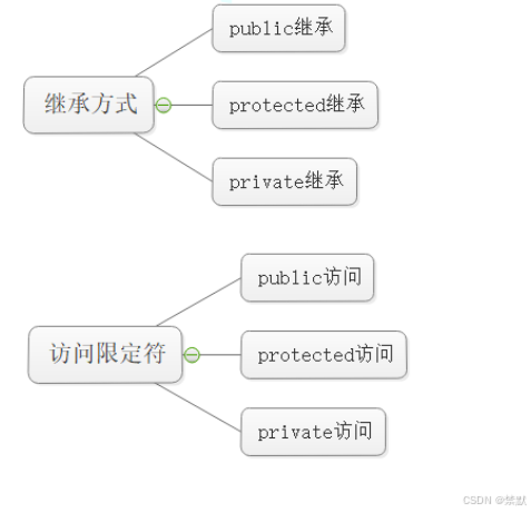 2. 基类 private 成员在派生类中是不能被访问,如果基类成员不想在类外直接被访问,但需要在
