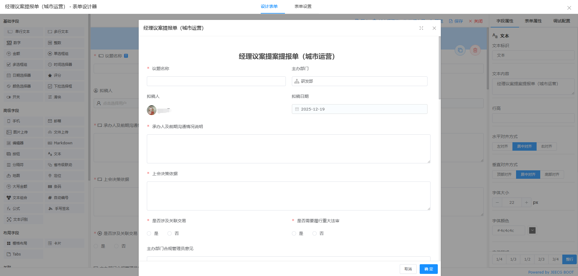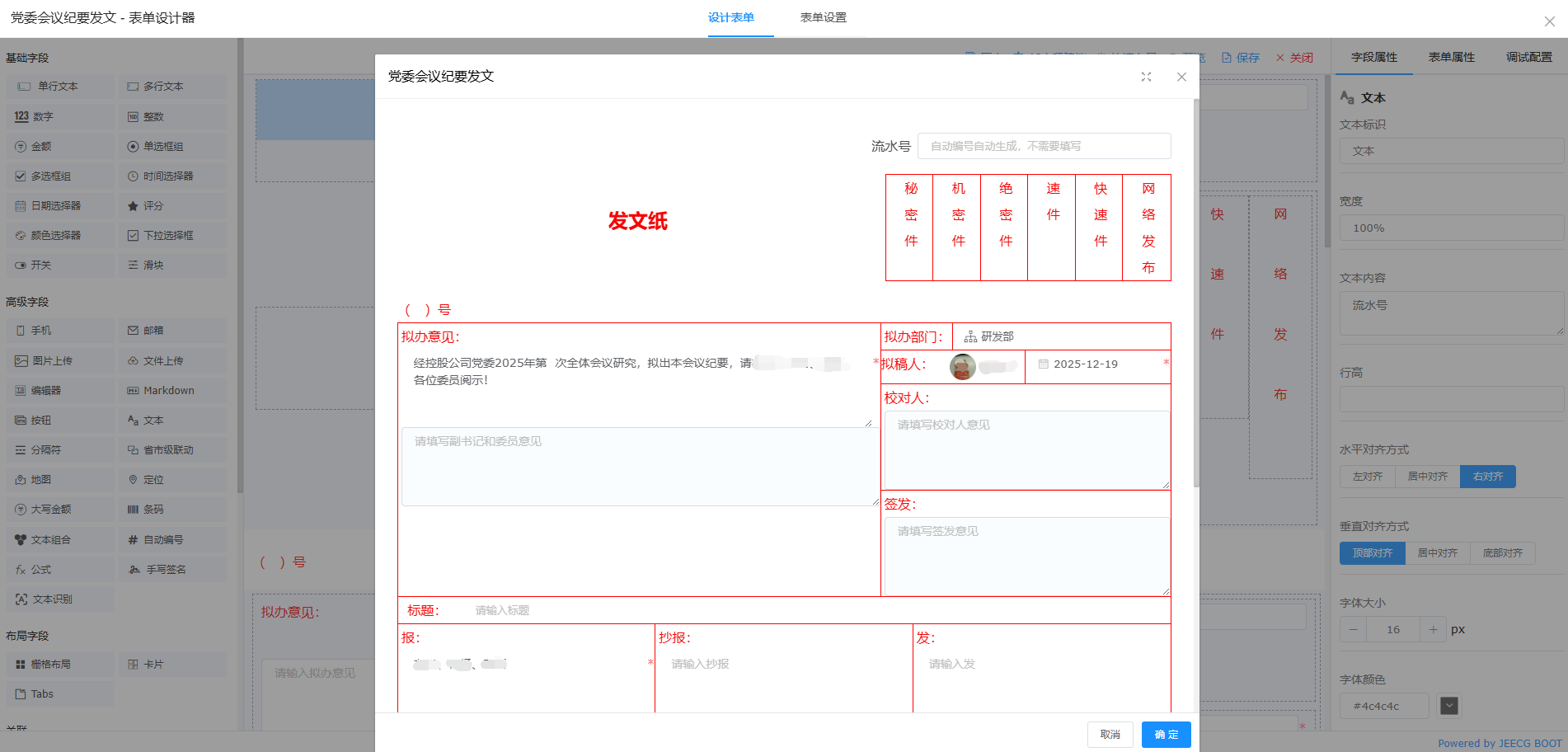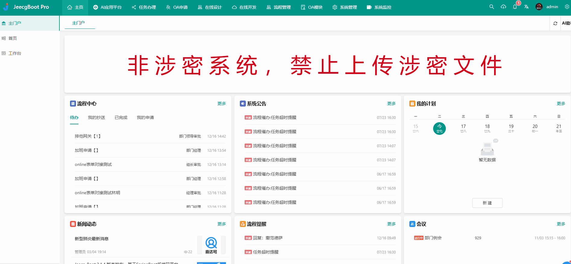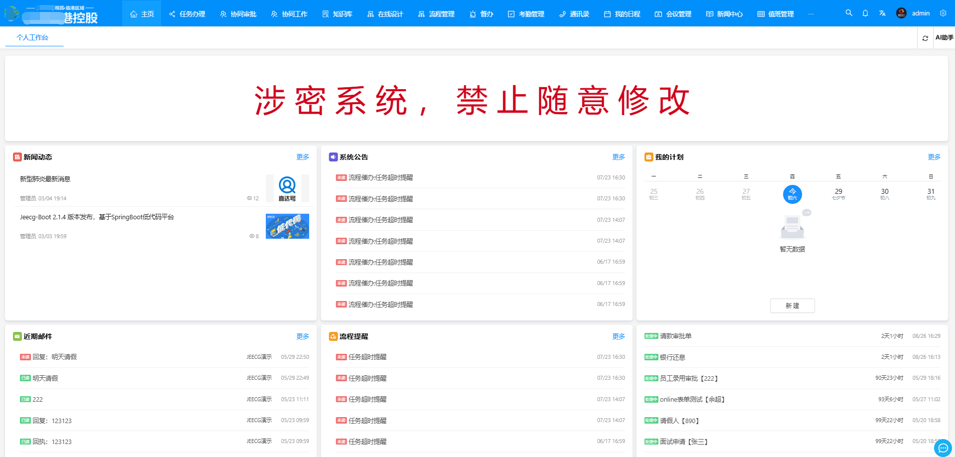 项目成果:基于JeecgBoot开发框架,12周内成功交付集团级OA系统,覆盖20多个业务模块、5个国产软硬件栈、7类终端,实现了快速交付、全面覆盖、信创合规的完美结合。
