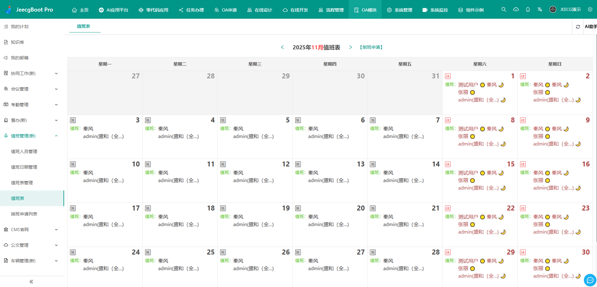 核心功能:根据以上规则管理整个集团每月值班情况,实现一键排班,大幅提升排班效率。