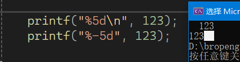 图中%-5d的左对齐由于右边没参照物不好观察,但需要知道,会填充空格,我用鼠标选中了%-5d进行填充的空格
