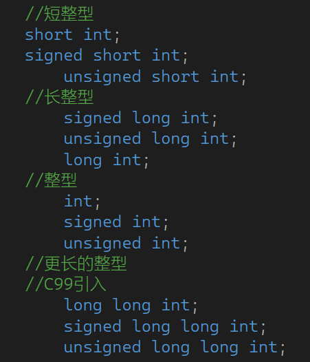 长,短,更长整型中,int可以省略