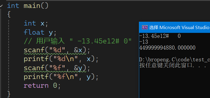 是 . ,由于对应的占位符是 %f ,会读取到 .45e12 ,这是采⽤科学计数法的浮点数格式。后⾯的
