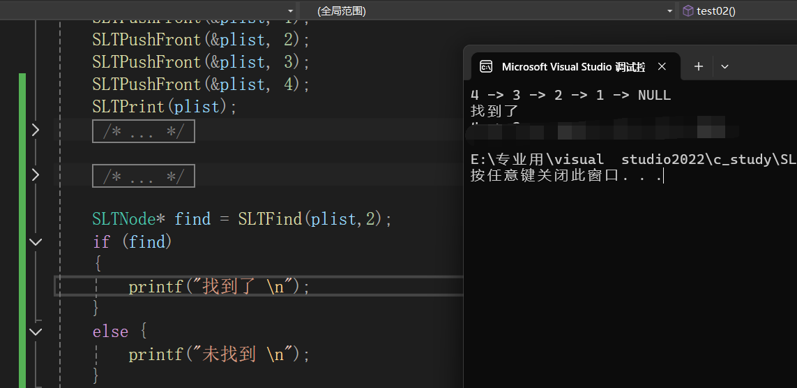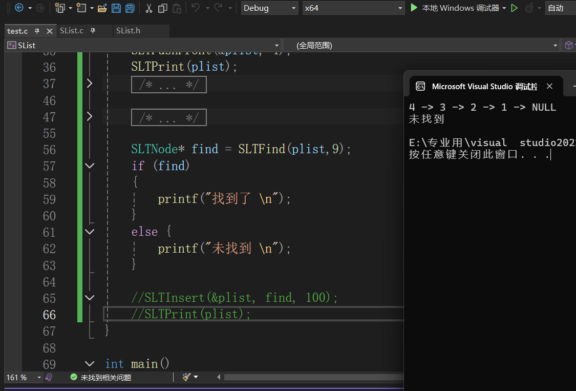}函数的测试和运行 SLTNode* find = SLTFind(plist,9);