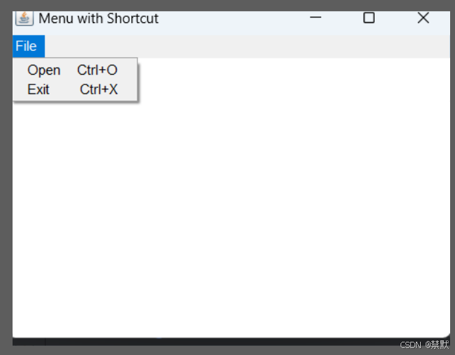 Frame frame = new Frame("Menu with Shortcut");