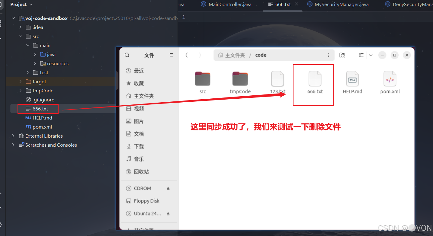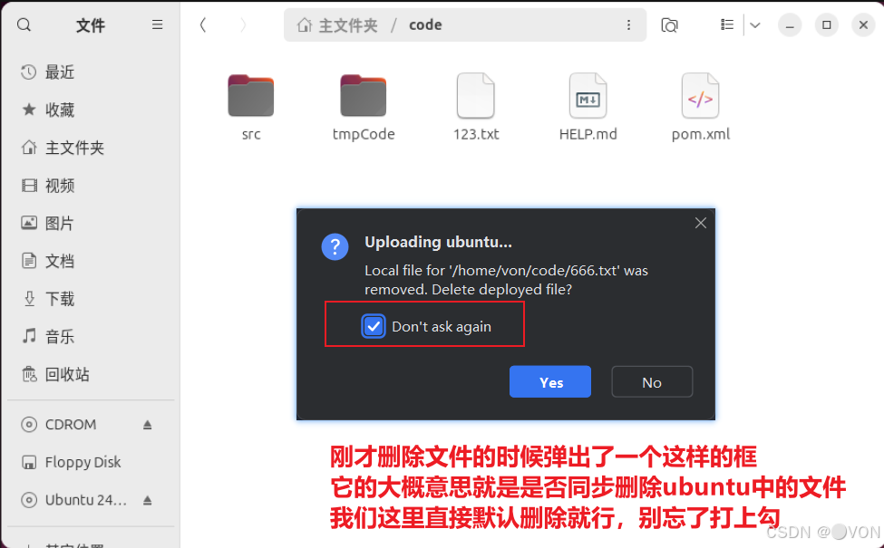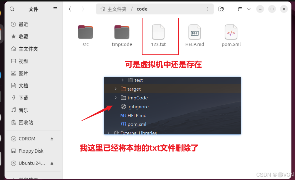 来看一下这种情况,就是删除本地文件的时候,虚拟机中的文件并没有被删除