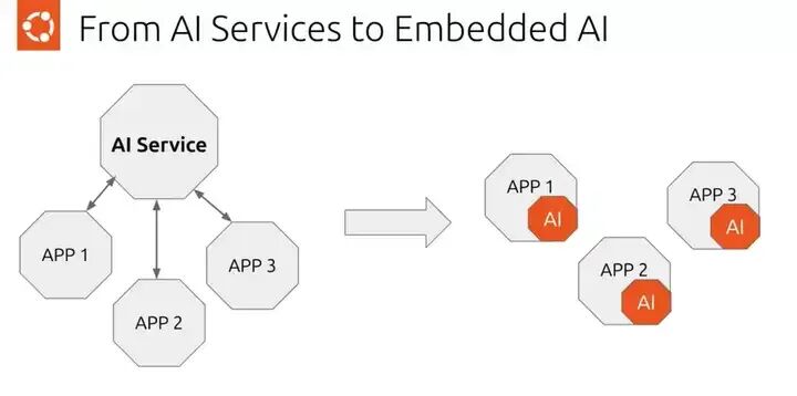 过去一两年,绝大多数AI应用都采用"外部服务+API调用"模式:通过调用大型模型服务商提供的网络接口获取推理结果。但行业正在发生转变——越来越多团队尝试将AI直接嵌入应用内部,而非依赖外部服务。这种转变的核心逻辑在于:并非所有应用都需要千亿参数的巨型模型。对于许多场景,十亿参数级别的小模型甚至更小模型就足够胜任,且成本更低、响应更快。无论是在客户端设备还是服务器端运行,这种"AI作为应用组件"的模式正逐渐替代传统的分布式网络调用方案,显著降低延迟与成本。