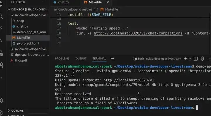 这一设计的核心价值在于:应用代码可直接调用封装在snap包中的AI模型,形成依赖链——snap包可相互依赖,类似Android/iOS开发中系统级库的调用方式。在Ubuntu生态(涵盖DGX Spark、Jetson Thor及多数AI云服务器)中,这种依赖管理机制能让开发者将应用与系统级AI能力深度整合,实现“开箱即用”的部署体验。