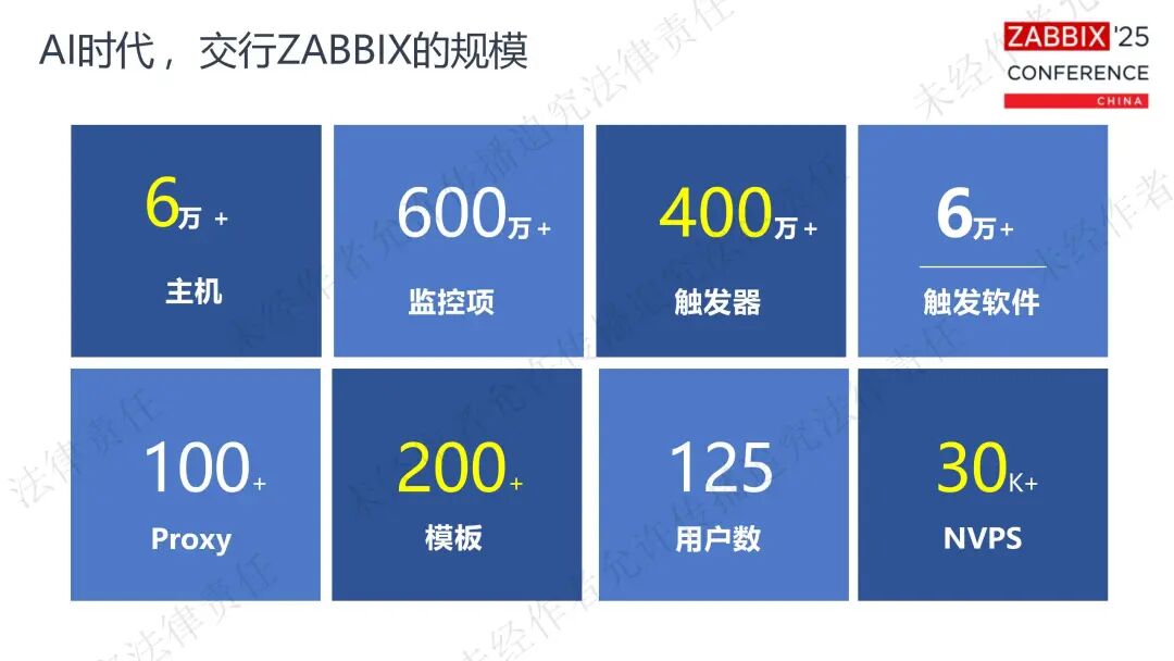 交行的工作也在积极拥抱数智时代,通过科技创新推动金融业务智能化升级,除了刚刚提到的监控巡检,其他领域也以行内已有的数据湖/数据中台为基础,在丰富数据种类、强化数据治理、强化数据标注,构建高质量TB级数据集。同时完善全行知识运营机制,建立企业级统一知识库,实现模型训练和场景应用多源数据高效供给。AI技术已在智能运维、风险防控、智能客服、办公辅助等领域广泛应用。希望未来和大家一起积极探索Zabbix在AI时代下的创新案例!